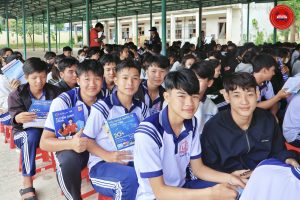 Tại THPT Phù Cát 2, chương trình diễn ra trong không khí sôi nổi và tập trung. Các bạn học sinh không chỉ lắng nghe mà còn активно trao đổi, đặt câu hỏi liên quan đến ngành nghề và cơ hội sau tốt nghiệp.